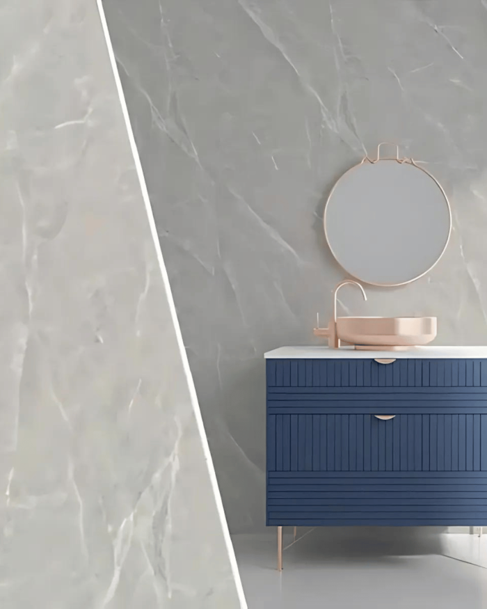 Ge din inredning en touch av lyx med Marble-Look PVC Stone Gold. Denna eleganta väggpanel kombinerar varma, stenliknande toner med en subtil gyllene glans, vilket skapar en raffinerad och elegant look. Perfekt för användning i badrum, duschar, toaletter, bioväggar och kök, erbjuder denna panel både stil och funktionalitet.